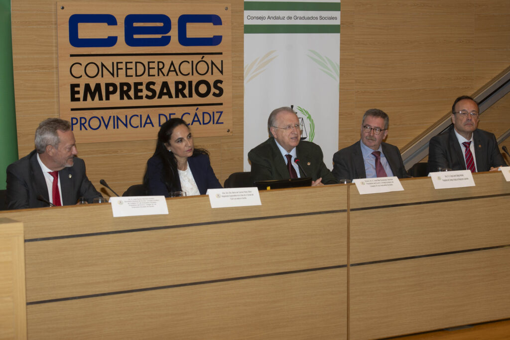 En la jornada han participado también el Delegado Territorial de Empleo, Formación, Trabajo Autónomo y Economía, Conocimiento, Empresas y Universidad de la Junta de Andalucía en Cádiz, Alberto Cremades, y el jefe provincial de la Inspección de Trabajo, Eugenio Santa Bárbara Martínez. La colaboración que mantienen los Graduados Sociales con la Consejería de Empleo, Formación y Trabajo Autónomo y el Consejo Andaluz de Relaciones Laborales (CARL) es necesaria para el reciclaje de temas de actualidad y a compleja situación que el mercado laboral tiene hoy en día.
