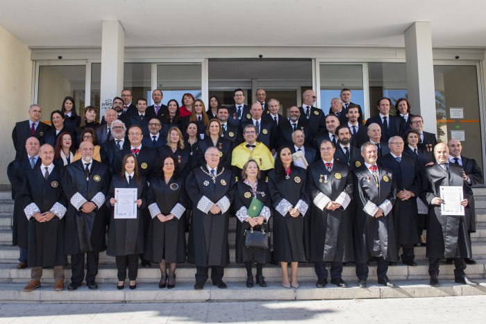 Quien os escribe, como Presidente del Colegio de Cádiz y Ceuta, fui el encargado de pronunciar las laudatios de los homenajeados, poniendo de manifiesto la estrechísima relación que les une con esta corporación de profesionales y operadores jurídicos del Orden Social. Es tradición en esta ceremonia hacer entrega del diploma acreditativo de la Medalla Colectiva al Mérito en el Trabajo a los colegiados que cumplen 20 años de pertenencia a la corporación. Este año reciben el diploma José Romero Abad, Manuel Augusto Roca Suárez, Antonio Morales Nadal, Concepción Porras Lima, Elisa Isabel Moreno Pacheco, Rosario Grande Márquez, Miguel Ángel Martín Rodríguez, Beltrán Ysasi Arizón, María de la Caridad Aragón García, Mercedes Sánchez Trujillo, Jesús María Tocino Caucín, María de los Ángeles Cabrerizo Laz, Rafael Castro Cabrera, Rafaela Macías Gamaza, Manuel Santiago Vargas Vázquez, Pedro Pablo Barrios Perles, José Fernando Gómez Vázquez, José Ramón García Mañana, Javier Ponciano Vidal, Francisco Fernández Corrales, Juan de Mata Valdés Castrillón, Juan Luis Fernández Cerredo, Cristina María González Rodríguez, José Bruzón Gallego, Mercedes Mota Rodríguez y Aberto Ruiz Curral. La cita anual ha contado con la asistencia de los presidentes de los Colegios de Graduados Sociales de Málaga y Melilla, Juan Fernández Henares; Almería, María del Mar Ayala Andújar; el tesorero del Consejo Andaluz de Colegios de Graduados Sociales, Eduardo Ruiz Vega, y la decana de la Facultad de Ciencias del Trabajo, Socorro Montoya Sánchez, junto a una nutrida representación de la jurisdicción del Orden Social, magistrados, colegiados y agentes sociales.